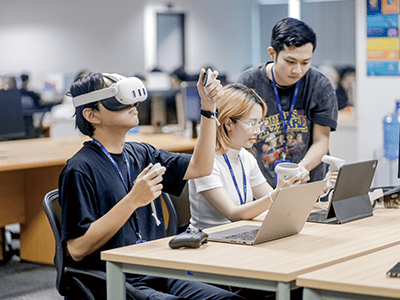 クロスリアリティ(VR / AR / MR)の技術を用いて現実世界と仮想世界の融合する世界を作り、空間シミュレーションの中で課題解決を目指せます。